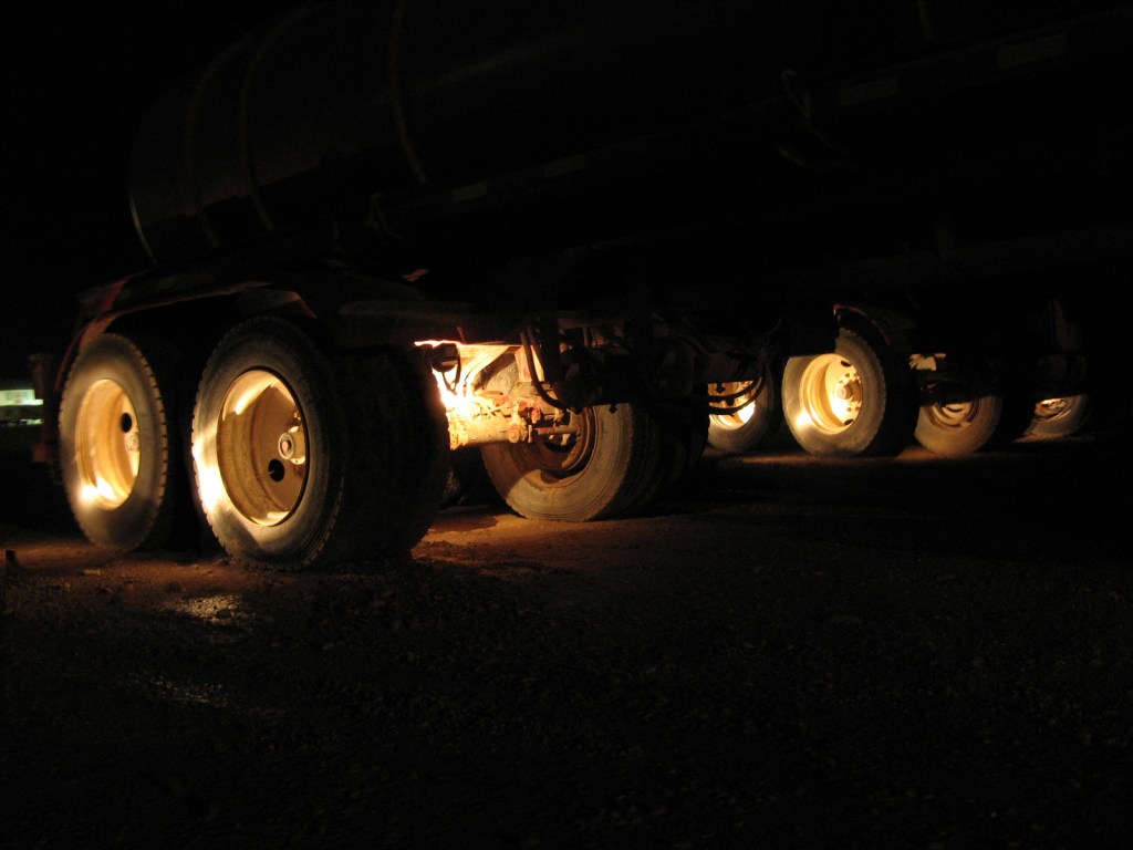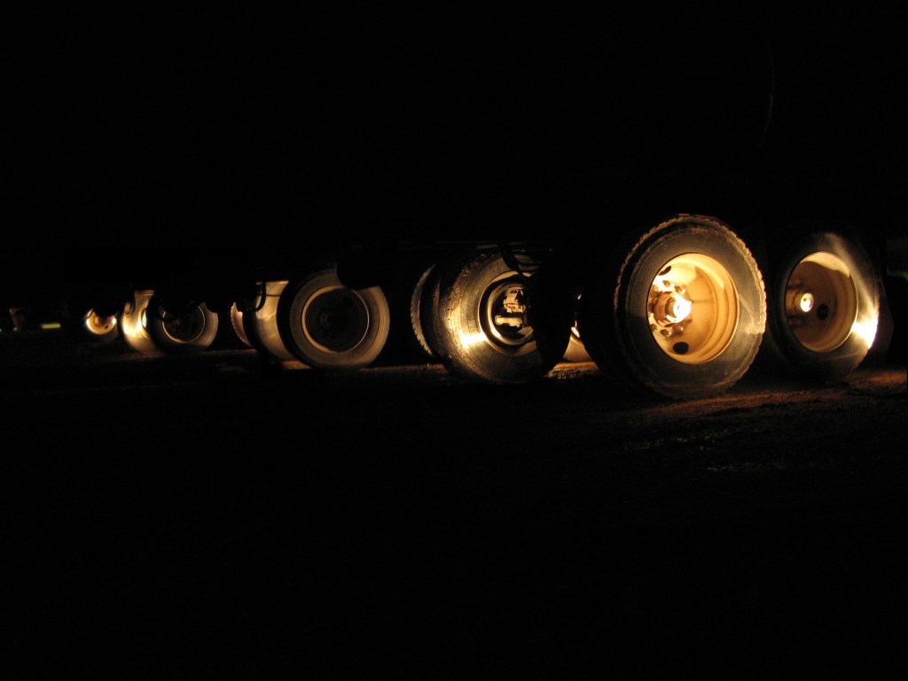Éclipses / lampes de poche dans des roues de camions, pendant le sommeil de camionneurs