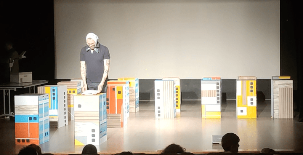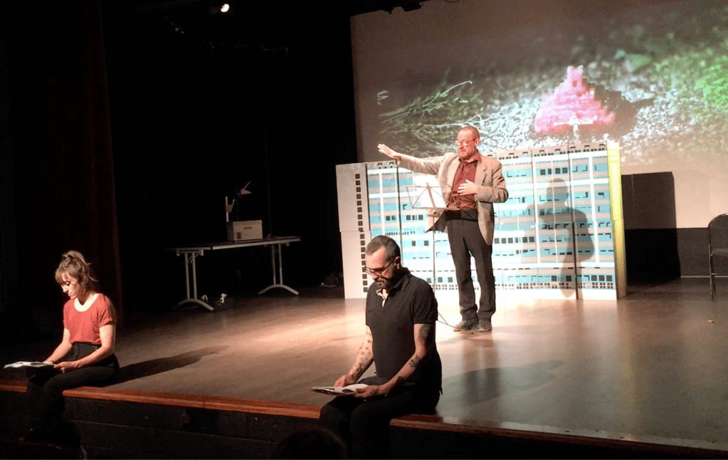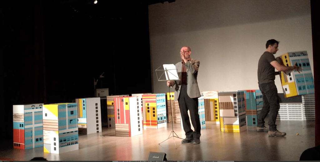 Boris Klein, enseignant au lycée La Martinière-Duchère et Vincent Genco, artiste plasticien, ont rassemblé des récits et mené un travail d’enquête historique sur ce quartier. « Plateau » est ici un mot-clef qui permet de tendre un fil tout au long du texte entre le territoire et l’espace du théâtre. Sur scène, des dessins, volumes, cartes, etc., rendront visible un jeu sémantique aut- our de l’encaissement, l’écoulement, l’affaissement, l’enfouissement, la résurgence – des cours d’eau, de la parole, de l’Histoire.